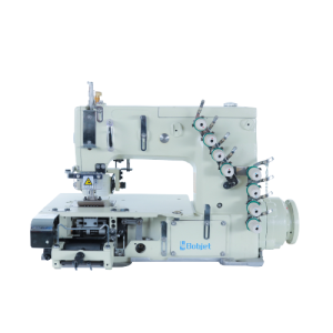 Direct Drive 4 needles, 8 Threads Flatbed Double Chain Stitch, Multi Needle Machine with Elastic waist Band Puller