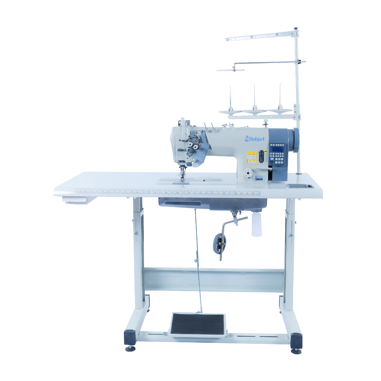 The BOBJET- 8450-4D sewing machine with Corner Control is ideal for light to heavy-weight materials like cotton, denim, canvas, and nylon. It achieves a max sewing speed of 3000 SPM and features adjustable stitch lengths up to 5 mm. Suitable for clothing, uniforms, workwear, jeans, tote bags, and banners.